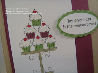 Cupcakes are one of my favorite treats, especially at parties. For a recent workshop, I created this simple birthday card using the "Crazy for Cupcakes" stamp set. I added a splash of color to the image using our fabulous Stampin' Write Markers, then took it up a step and added Dazzling Diamonds to the frosting of the cupcakes for some sass.
